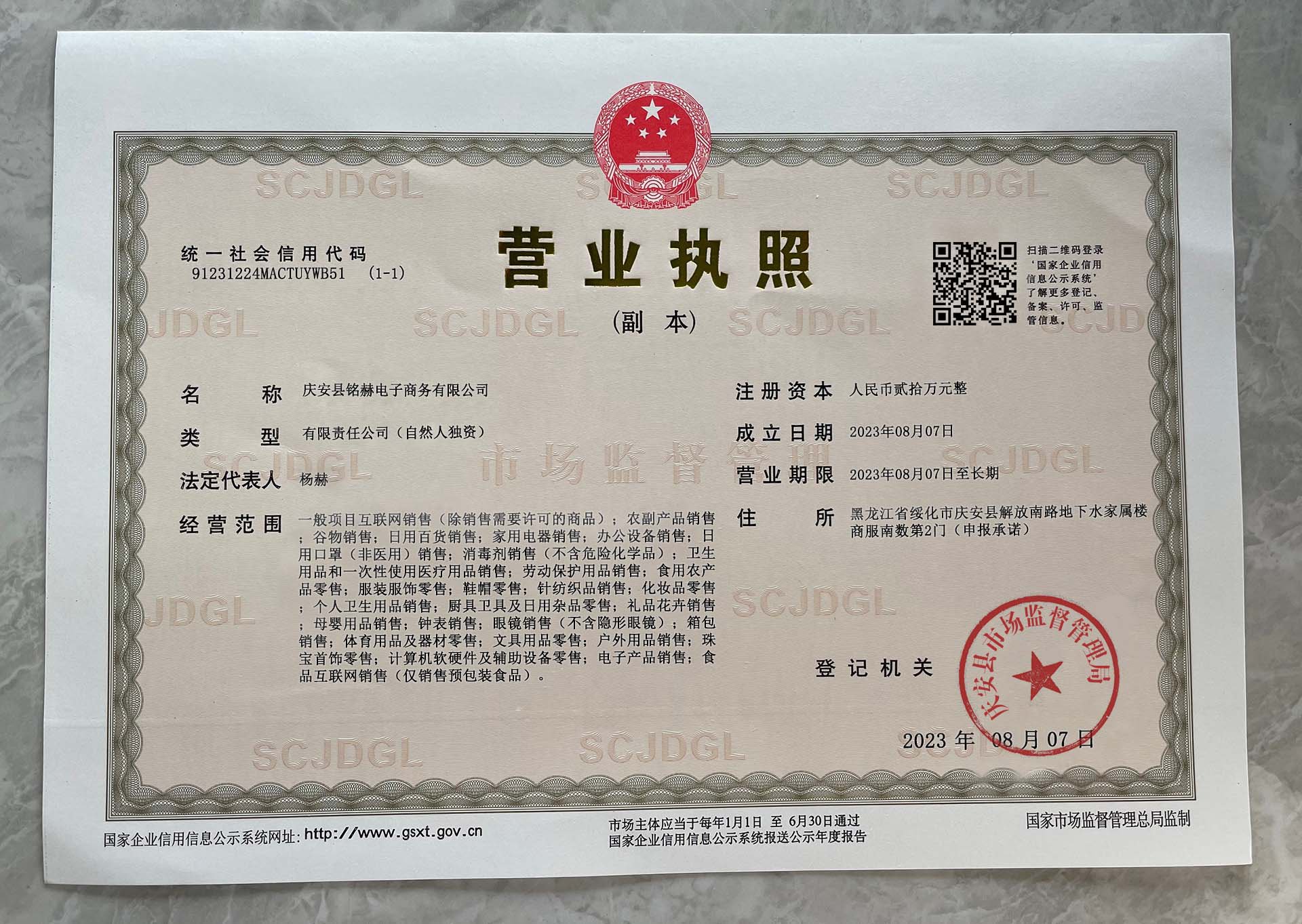 Corporate name:Qing'an Minghe E-commerce Co., Ltd